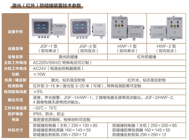 激光(紅外)防碰撞裝置技術(shù)參數(shù) 瀏覽:1522