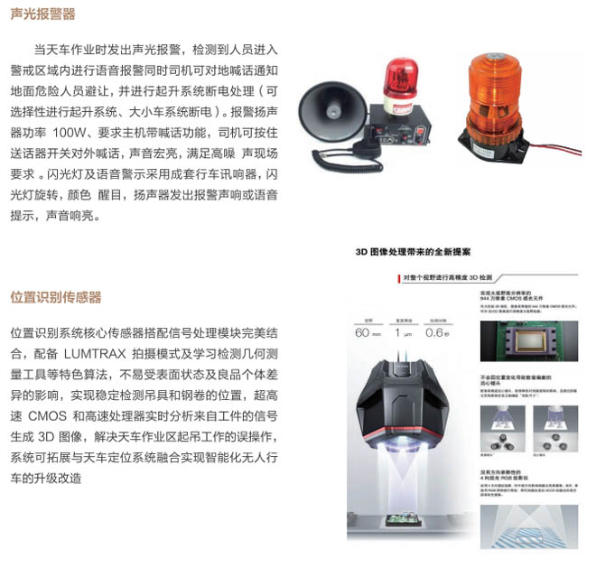 5、位置識(shí)別系統(tǒng):采用定位及位置識(shí)別最新技術(shù),通過(guò)圖像識(shí)別傳感器,識(shí)別鋼卷和吊具的位置,進(jìn)行計(jì)算和分析判斷吊具與鋼卷具備吊掛和起吊條件,進(jìn)行語(yǔ)音提示,系統(tǒng)具有自動(dòng)識(shí)別跟蹤鋼卷與吊具的距離,操作工實(shí)時(shí)掌握清晰的位置及畫面信息,準(zhǔn)確無(wú)誤的操作,與天車定位系統(tǒng)拓展能達(dá)到自動(dòng)起吊,最終實(shí)現(xiàn)智能化、無(wú)人化行車的升級(jí)改造。該系統(tǒng)能極大的減少操作人員的誤操作,給生產(chǎn)及安全提供有力保障,提高生產(chǎn)效率及設(shè)備安全性。