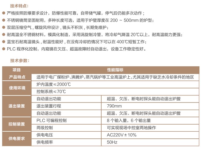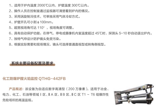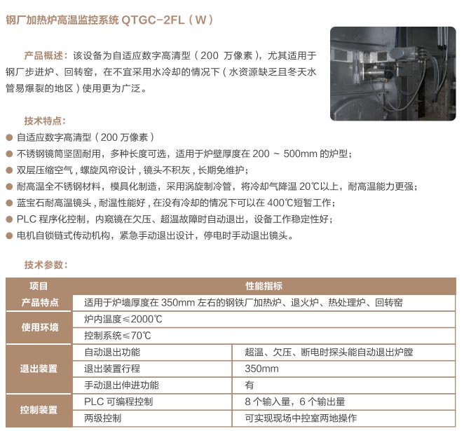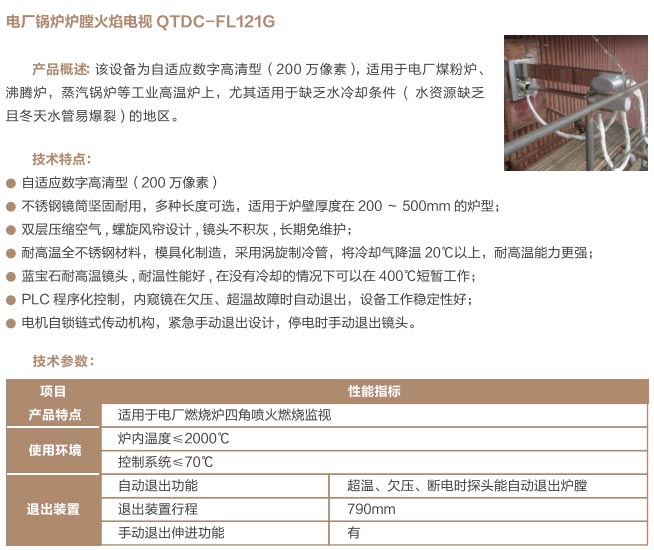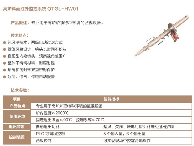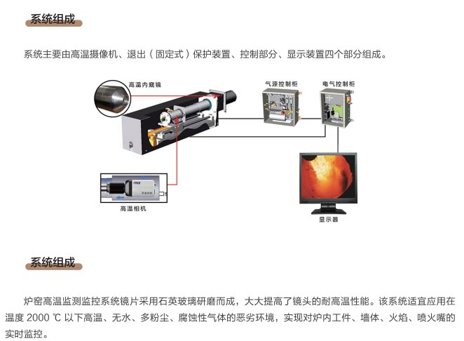 爐窯高溫監(jiān)測監(jiān)控系統(tǒng)是專為工業(yè)高溫爐窯監(jiān)測監(jiān)控的設(shè)計(jì)的智慧管理平臺,是針對爐壁開孔和爐窯視像有嚴(yán)格要求的高溫爐窯而研制的高溫工業(yè)電視。利用特種高溫孔式光學(xué)鏡頭,鏡頭設(shè)計(jì)采用中繼物鏡,兩次成像系統(tǒng),使像面在遠(yuǎn)離觀察孔的CCD靶面上形成,最大限度的減少進(jìn)入攝像機(jī)的熱輻射,致力為冶金、電力、建材、礦山、化工等行業(yè)服務(wù)。我公司研發(fā)主導(dǎo)產(chǎn)品已擁有第三代SG內(nèi)窺式高溫工業(yè)電視系列、爐壁式高溫工業(yè)電視系列、內(nèi)窺式拐角高溫工業(yè)電視系列、鍋爐汽包水位電視系統(tǒng)等成套設(shè)備,以及各種風(fēng)冷防護(hù)罩,水冷防護(hù)罩,渦旋制冷防護(hù)罩等工業(yè)監(jiān)控設(shè)備配套產(chǎn)品。產(chǎn)品廣泛應(yīng)用于鋼鐵廠加熱爐、退火爐,電廠鍋爐爐膛火焰、水泥廠回轉(zhuǎn)窯窯頭看火、篦冷機(jī)看料、玻璃廠玻璃熔窯等特殊高溫環(huán)境。幫助用戶進(jìn)行工業(yè)爐實(shí)時(shí)電視監(jiān)測及控制,解決設(shè)備的運(yùn)行故障等,對用戶改善產(chǎn)品質(zhì)量、降低成本、安全生產(chǎn)有著獨(dú)特的成效。受到了用戶的一致好評。